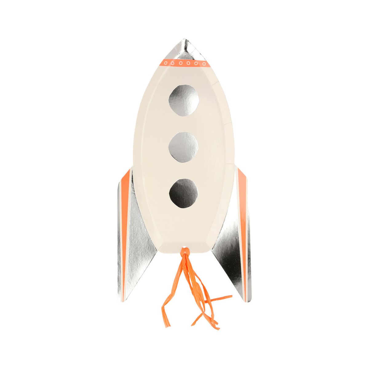 Pack of 8 units. Ideal rocket shaped plates for space lovers.