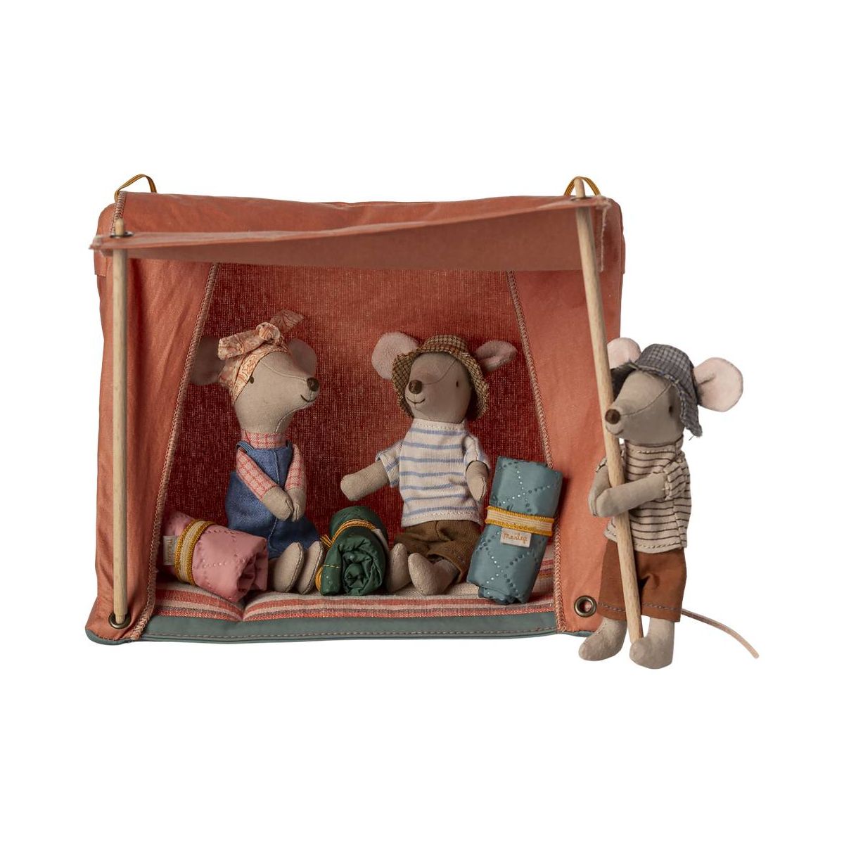 Take your mice along for a sleep-over under the stars in the easy fold-up tent. The blanket will keep your friends warm during the night. The outer fabric has a coated surface for a more authentic look.