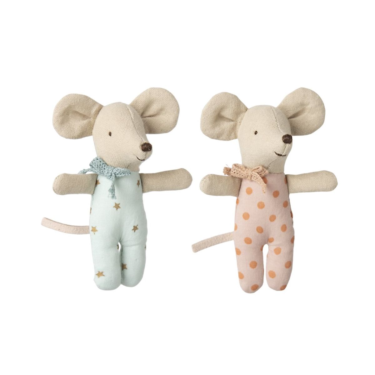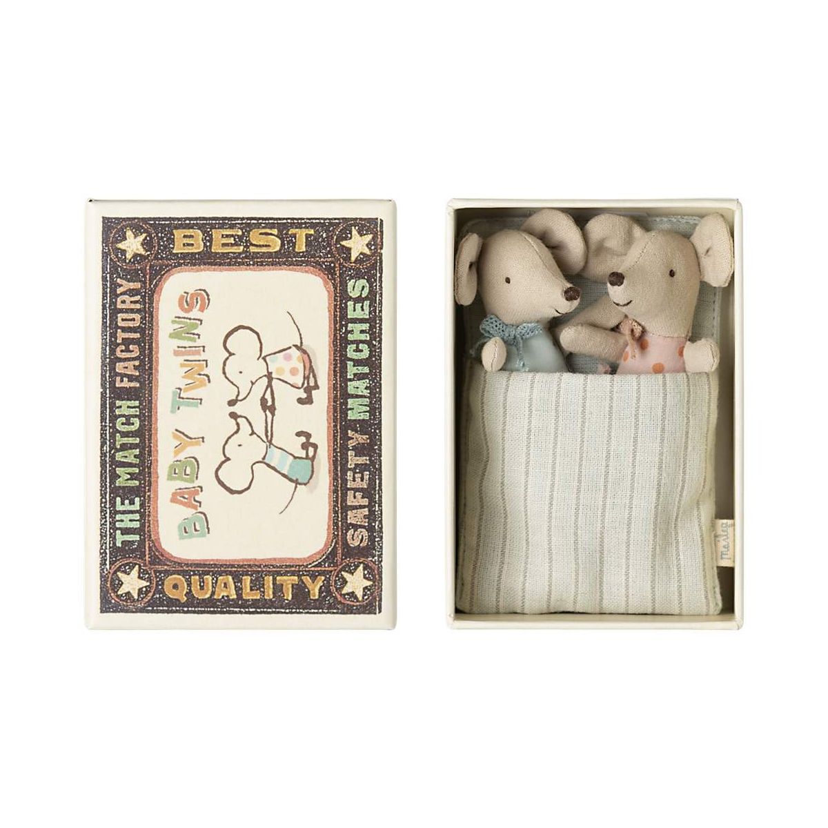 Two sweet baby mice. They sleep safe in their double sleepingbag and their matchbox bed.
