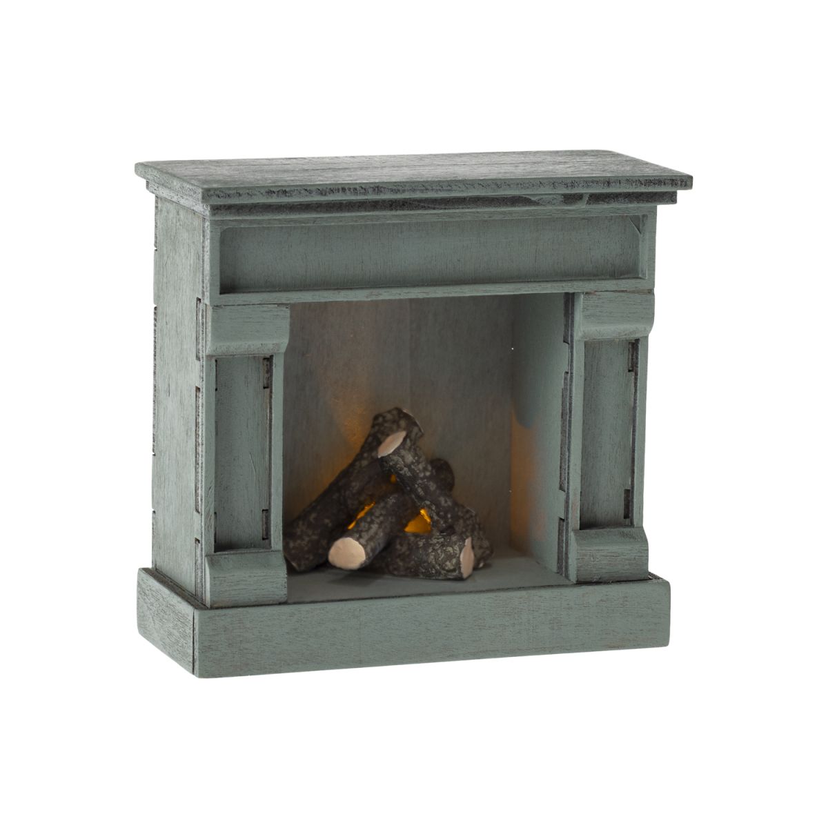 Use this wooden fireplace to warm your miniature home. It has an authentic look and a vintage finish. Remember to turn off the light when your friends go to bed. An adult can change the battery, which is non-rechargeable.