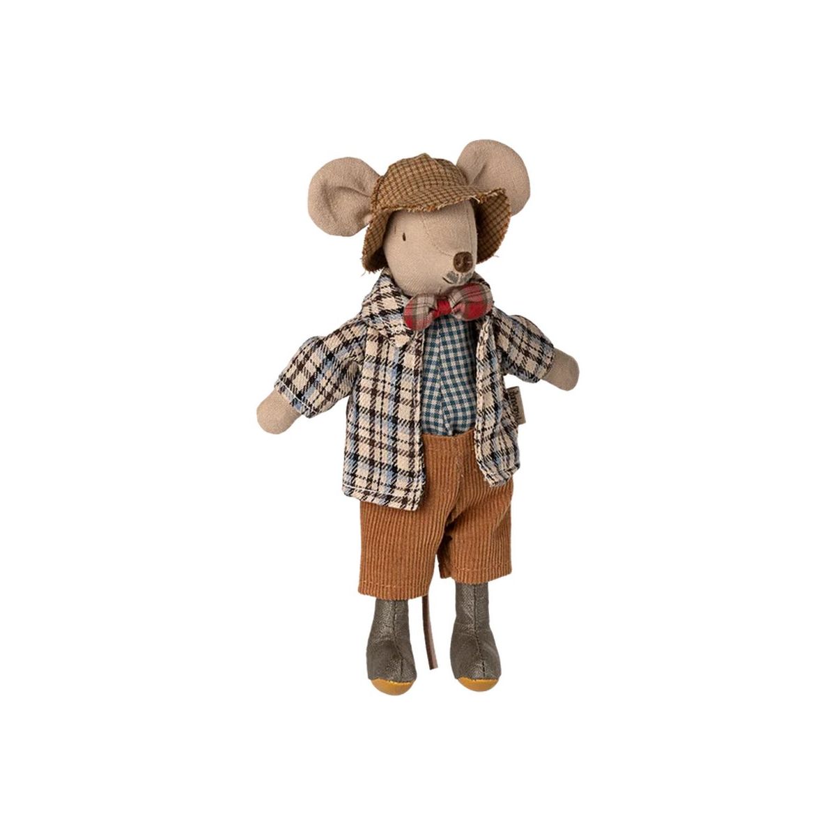 The granddad looks both wise and nice - he wears rubberboots, butterfly, pants and jacket and is always ready to cheer you up with all his many stories. The mouse has magnets in its hands.