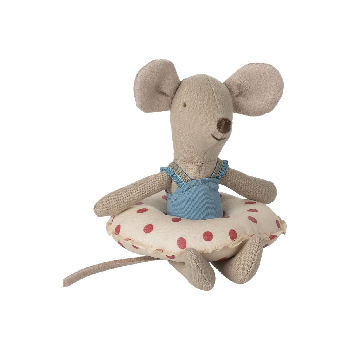 Tiempo de vacaciones. Esta ratoncita está lista para un día en la playa, con todos los accesorios necesarios. Como es el miembro más pequeño de la familia, por supuesto tiene un flotador para mantenerla a salvo.